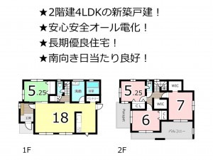 - 食器洗浄乾燥機、IHクッキングヒーター、オール電化、浴室乾燥機、ウォークインクローゼット、モニタ付インターホン、駐車場3台分、トイレ2箇所