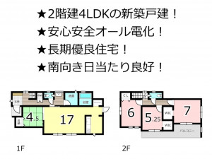 - 食器洗浄乾燥機、IHクッキングヒーター、オール電化、浴室乾燥機、ウォークインクローゼット、モニタ付インターホン、駐車場3台分、トイレ2箇所